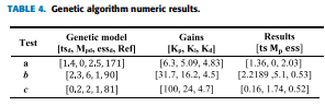 本研究中使用的植物是Mavilor品牌的DC電機型號CML-050。一旦定義了被控物和演算法所需的參數,GA就會反覆運算運行。該過程顯示在圖五中。這個過程通過遺傳模型(GM)的隨機值重複,以評估具有不同tsd、Mpd、essd和參考組合的情況。隨後,保存滿足GM要求的增益在資料庫中,將用於神經網路訓練的資料庫中。總共類比了10296種不同GM的組合來構建資料庫。這些值被選擇以保持反應在電機的操作極限範圍內。所使用的資料庫具有包含ts、Mp、ess、reference、Kp、Ki和Kd的向量。這個演算法的幾個結果可以在圖六中以圖形方式看到,在表一中以數位元元元方式看到。